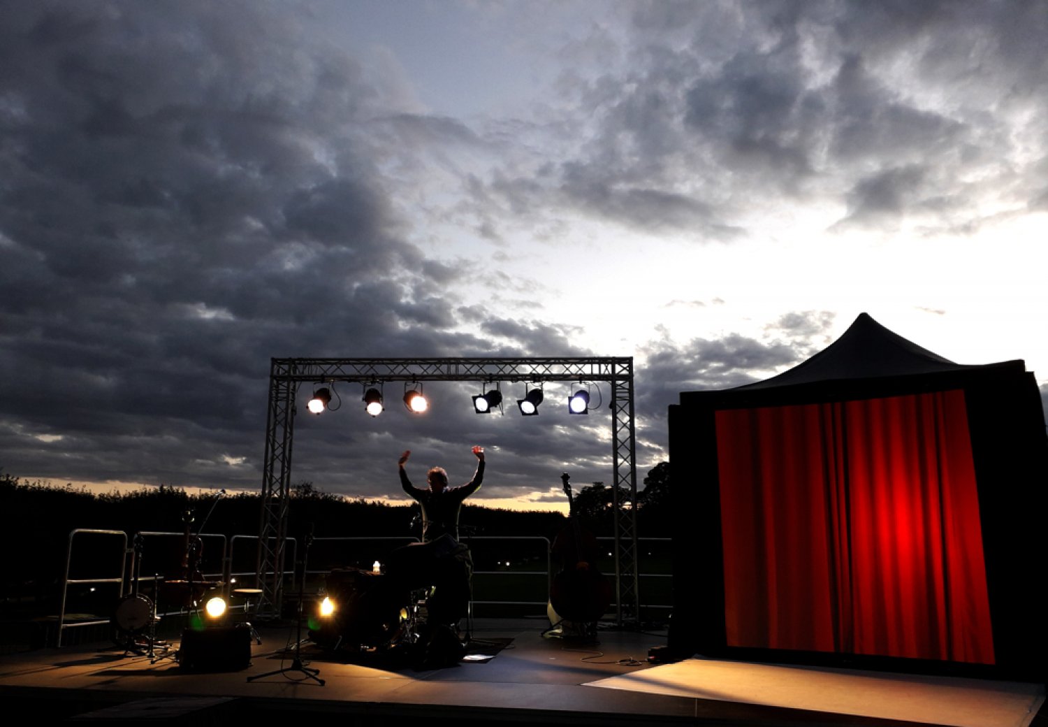 avec lumières et vidéos, accompagnera la danse, créant un espace immersif aux ambiances multiples : joyeuse, chaleureuse, poétique ou fantaisiste, et rappelant la fête, la guinguette…